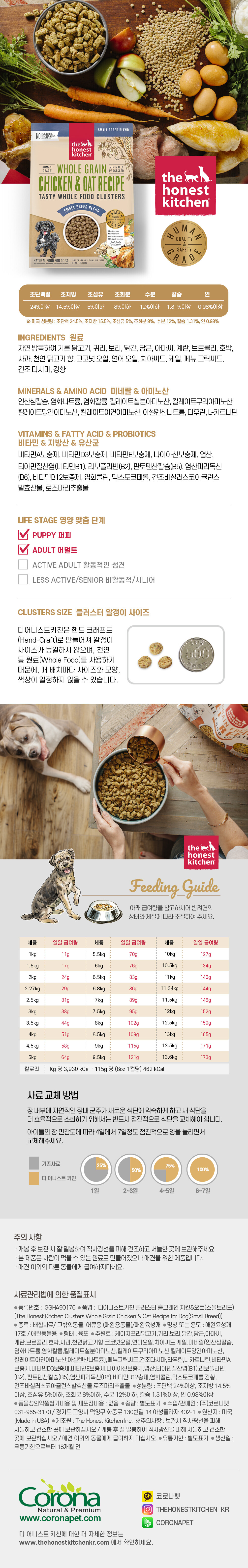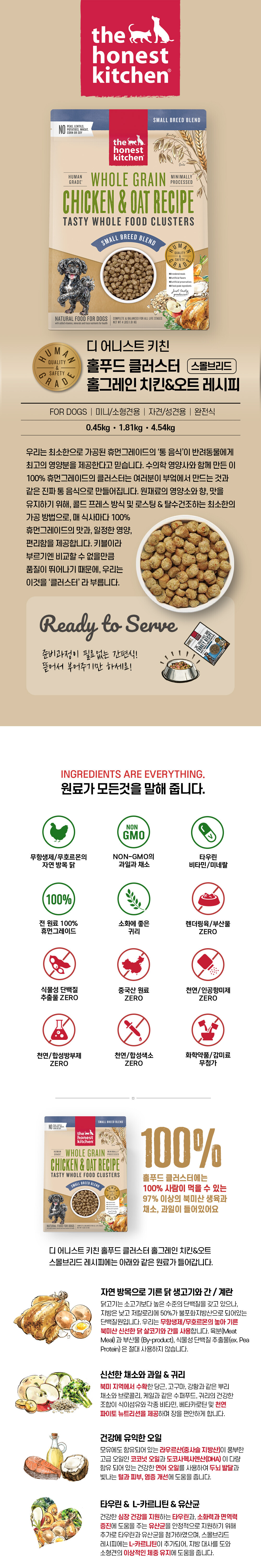 디어니스트키친 클러스터 홀그레인 치킨오트 스몰브리드 (450g / 1.81kg)