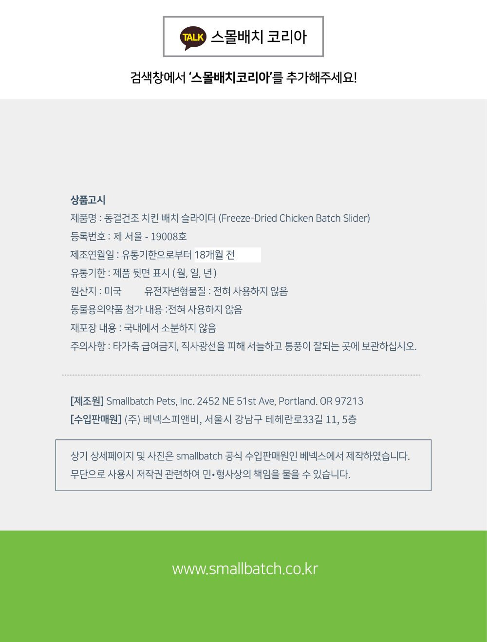 스몰배치 치킨 슬라이더 14oz (397g)