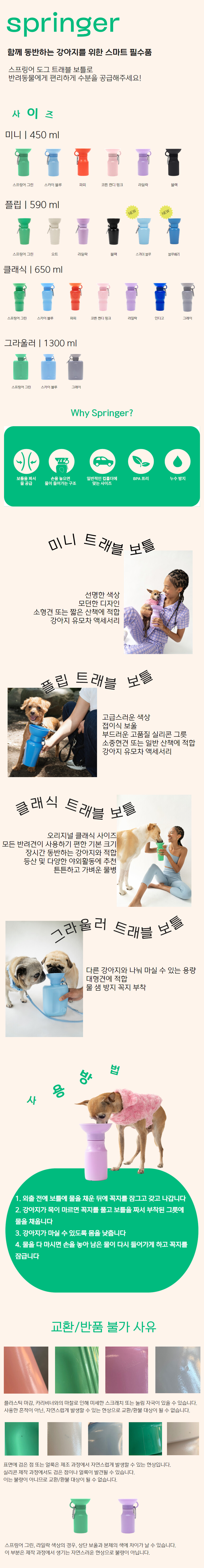 - 단순 변심, 부주의에 의한 제품 손상 및 파손, 사용 및 개봉한 경우 교환/반품이 불가합니다.